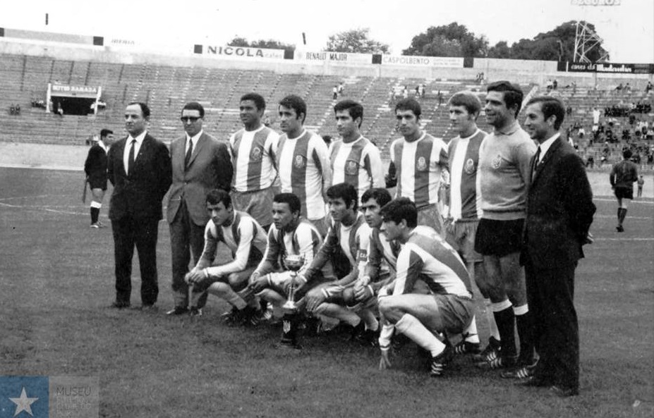 Published 31 de Dezembro de 2017 at 927 × 593 in Jaime, Djalma, Custódio Pinto, Eduardo Gomes, Nóbrega, 1º plano; Flávio Amorim, José Maria Pedroto, Bernardo da Velha, Valdemar, Atraca, “Pavão”, Rolando, Américo, António Morais, em pé ← Anterior Seguinte →