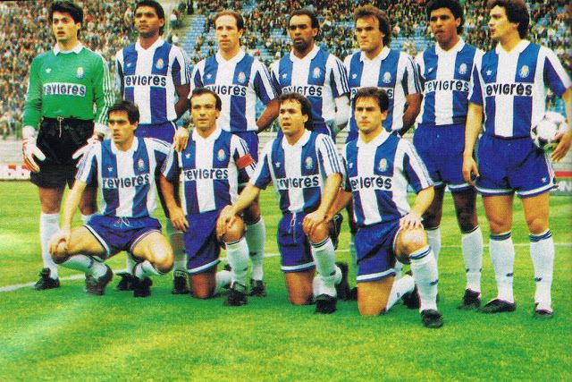 Published 26 de Abril de 2017 at 640 × 427 in Rui Águas, André, Madjer, Jorge Couto, 1º plano; Vítor Baía, “Geraldão”, Jaime Magalhães, Semedo, “Nascimento”, Paulo Pereira, “Branco”, em pé ← Anterior Seguinte →