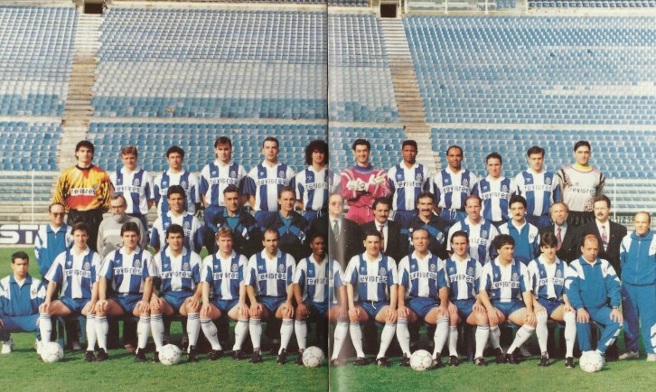 – , Domingos, Kostadinov, José Carlos, Rui Filipe, Bandeirinha, “Toni”, Neves, André, Jorge Couto, João Pinto, “Paulinho” Santos, Fernando Brandão, 1º plano; Agostinho, Luís César, “Paulinho” César, Hernâni Gonçalves, Carlos Alberto Silva, Jorge Nuno Pinto da Costa, Reinaldo Teles, Alfredo Murça, Jaime Magalhães, Rodolfo Moura, Domingos Gomes, Jorge Gomes, José Luís, 2º plano; Jorge Silva, Timofte, “Bino”, Vlk, Jorge Costa, Fernando Couto, Vítor Baía, Aloísio, Semedo, Rui Jorge, “Tozé”, Valente, último plano