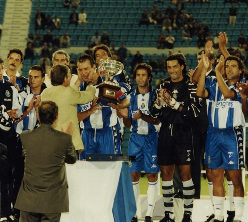 Published 27 de Janeiro de 2021 at 816 × 731 in Romeu, Ricardo Sousa, Jorge Costa, Secretário, Vítor Baía, “Capucho”, 1º plano; Rodolfo Moura, José Carlos Esteves, Rodolfo Reis, Fernando Santos, Jardel, 2º plano ← Anterior Seguinte →