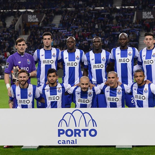 Published 31 de Maio de 2016 at 640 × 640 in Layún, Corona, André André, “Maxi” Pereira, Brahimi, 1º plano; Casillas, Marcano, Martins Indi, Aboubakar, Danilo, Herrera, em pé ← Anterior Seguinte →