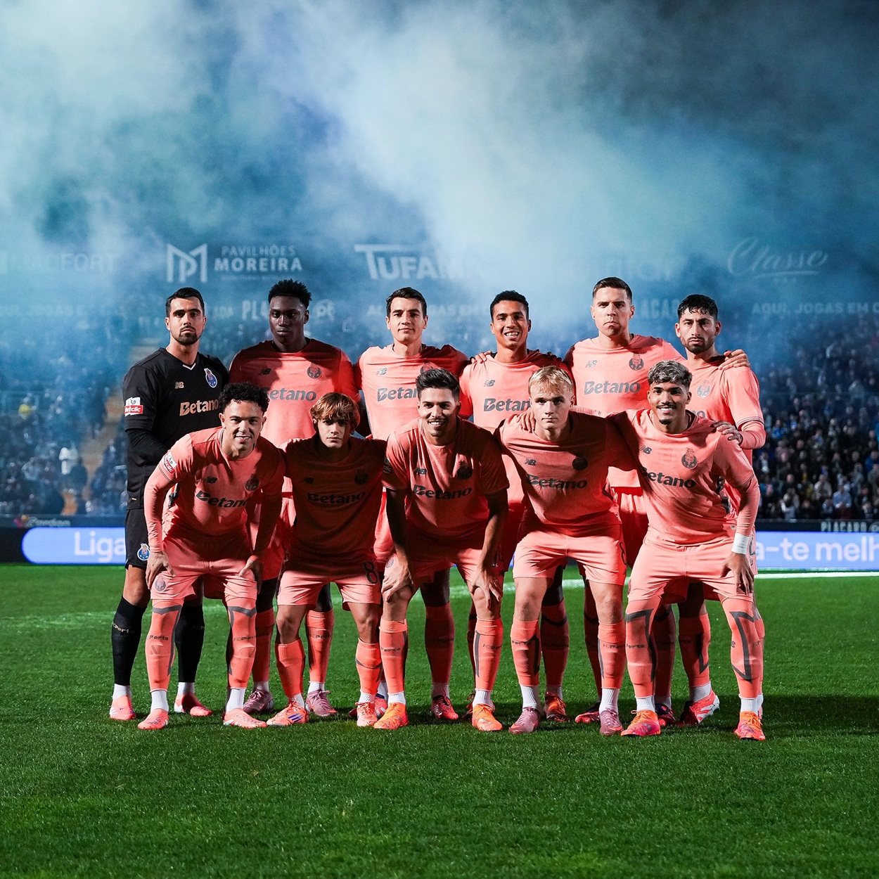 Published 10/11/2025 at 1250 × 1250 in “Pepê”, Rodrigo Mora, Francisco Moura, Victor Froholdt, William Gomes, 1º plano; Diogo Costa, “Samu” Aghehowa, Kiwior, Alberto, Bednarek, Alan Varela, em pé ← Anterior Seguinte →