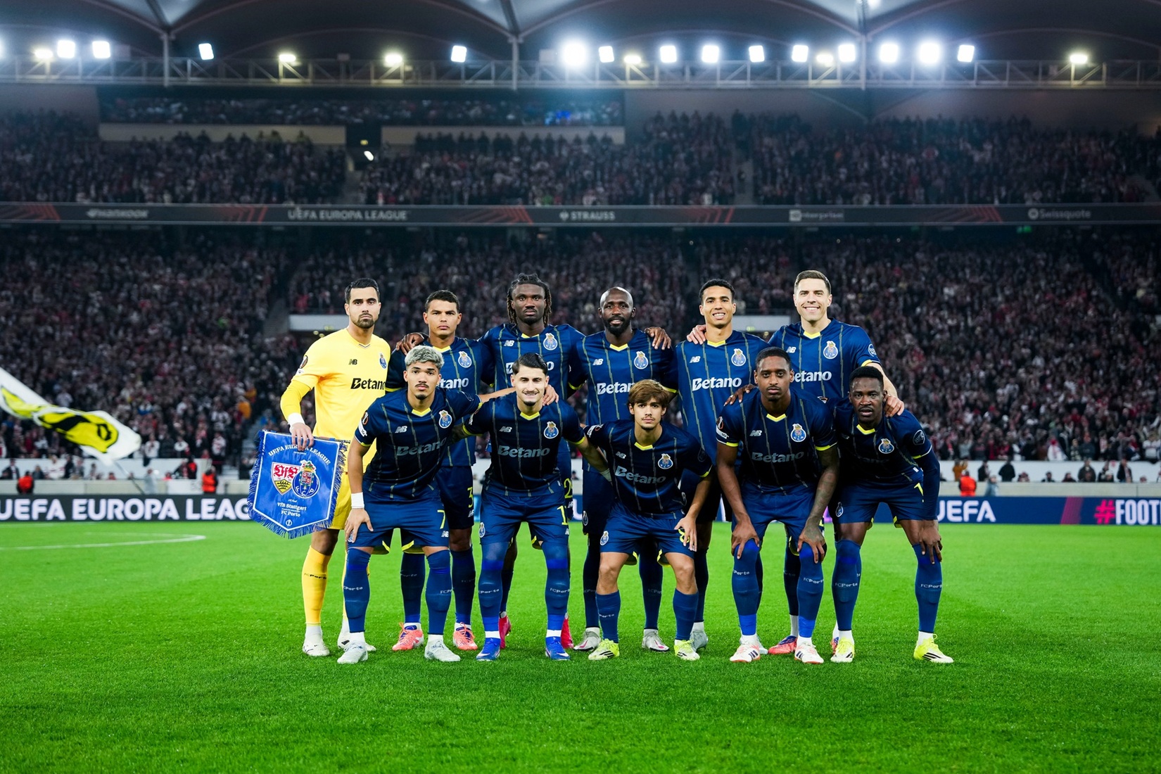Published 13/03/2026 at 1650 × 1100 in William Gomes, Borja Sainz, Rodrigo Mora, Pablo “Rosario”, Zaidu, 1º plano; Diogo Costa, Thiago Silva, Terem Moffi, Seko Fofana, Alberto, Bednarek, em pé ← Anterior Seguinte →
